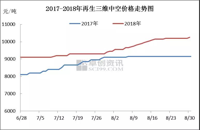 本周再生普纤主流市场行情继续上涨,局部地区价格也有上调。截至周四江浙市场再生普纤高强仿大化含税价格在9200-9600元/吨,较上周涨200元/吨。